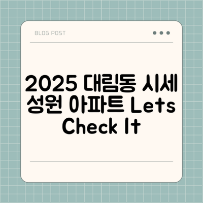 안녕하세요! 오늘은 서울시 영등포구 대림동 성원(650) 아파트의 2025년 12월 시세를 향한 투자 전략에 대해 이야기해볼게요. 아파트 시장은 복잡하고 변동성이 큰 만큼, 제대로 된 전략이 필요하죠!