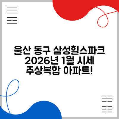 울산시 동구 일산동 삼성힐스파크(주상복합) 아파트의 시세는 2026년 1월과 2023년을 비교할 때 눈에 띄는 변화를 보이고 있습니다. 특히 2026년에는 실거래와 시장 동향을 반영하여 시세 상승이 예상됩니다. 이는 지역 개발 및 주거 환경의 개선, 입주 세대의 수요 증가 등이 주요 요인으로 작용할 것입니다.